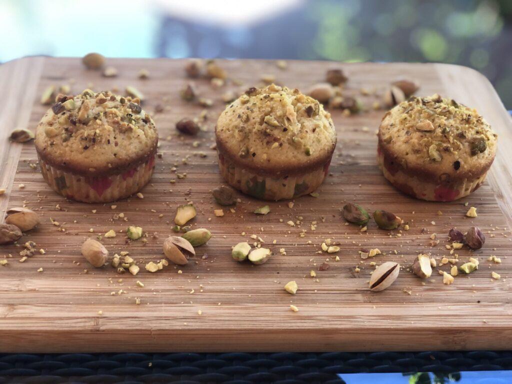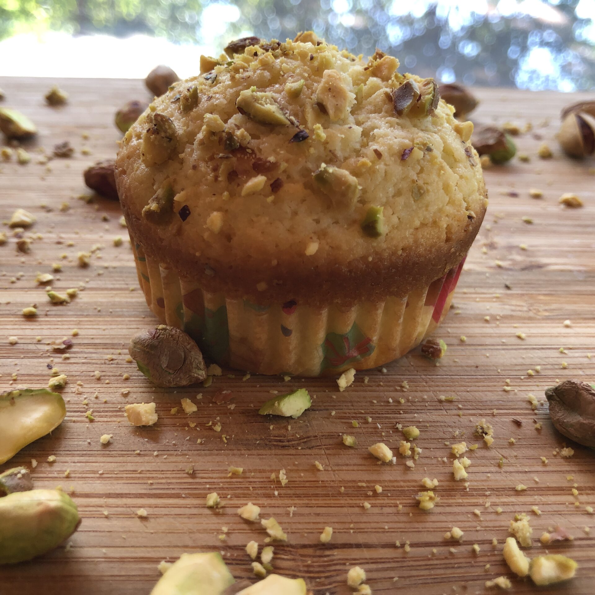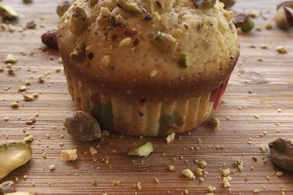 Muffin sütőbe muffin papírokat rakunk, ennek hiányában kivajazzuk és lisztezzük a sütőformát, és belekanalazunk 1-1 evőkanálnyit, majd erre kerül 1-1 teáskanálnyi pisztaciakrém és erre megint egy kevés muffin tészta. Tetejét végül megszórjuk a maradék pisztáciával.